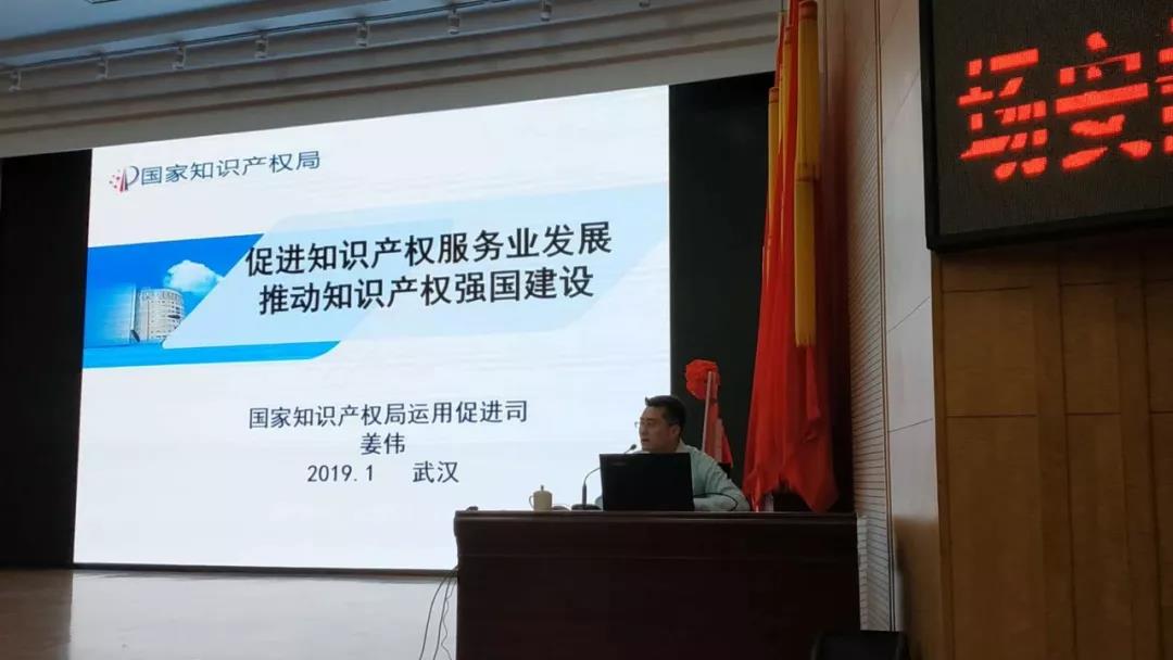 在成立大會(huì)結(jié)束之后,舉行專題培訓(xùn)會(huì)議。姜偉處長(zhǎng)受邀做題為《促進(jìn)知識(shí)產(chǎn)權(quán)服務(wù)業(yè)發(fā)展,推動(dòng)知識(shí)產(chǎn)權(quán)強(qiáng)國(guó)建設(shè)》的培訓(xùn)講座。培訓(xùn)會(huì)由協(xié)會(huì)秘書長(zhǎng)、武漢科技大學(xué)知識(shí)產(chǎn)權(quán)研究所副所長(zhǎng)蔡祖國(guó)教授主持。
